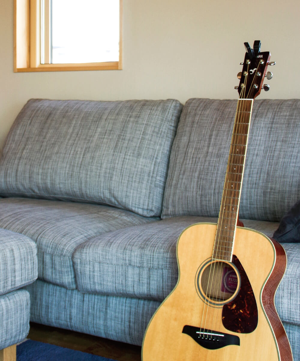 「木の家を検討し始めてから、さまざまな所を見学しましたが、最初から茶色く塗って完成時にピークを持ってくるのではなく、年月を経て色が変わる良さや味わいがあるほうが好みでしたし、和のようで北欧のようでもある、この少しモダンな雰囲気が気に入っています」というN様。ご夫婦揃って音楽好きなお二人の、音楽が似合う木のぬくもりのある家。リビングではジャズのアナログレコードが控えめに流れ、時折吹く静かな風を感じる、大人の落ち着いた時間が流れていました。