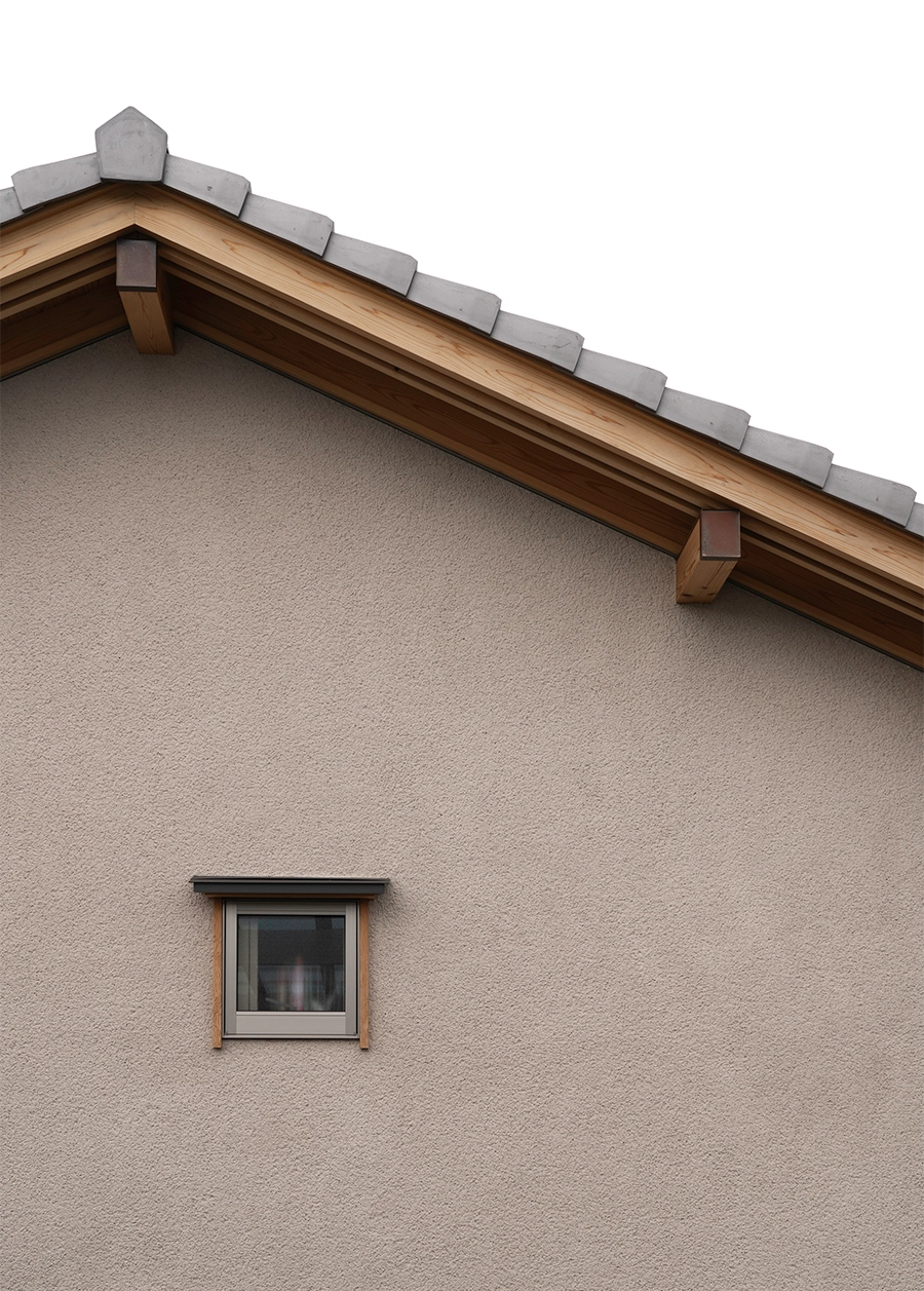 外壁はそとん壁、屋根は瓦屋根をご提案。瓦屋根は住んでいると気が付かないものですが、雨の日も音が静かです。